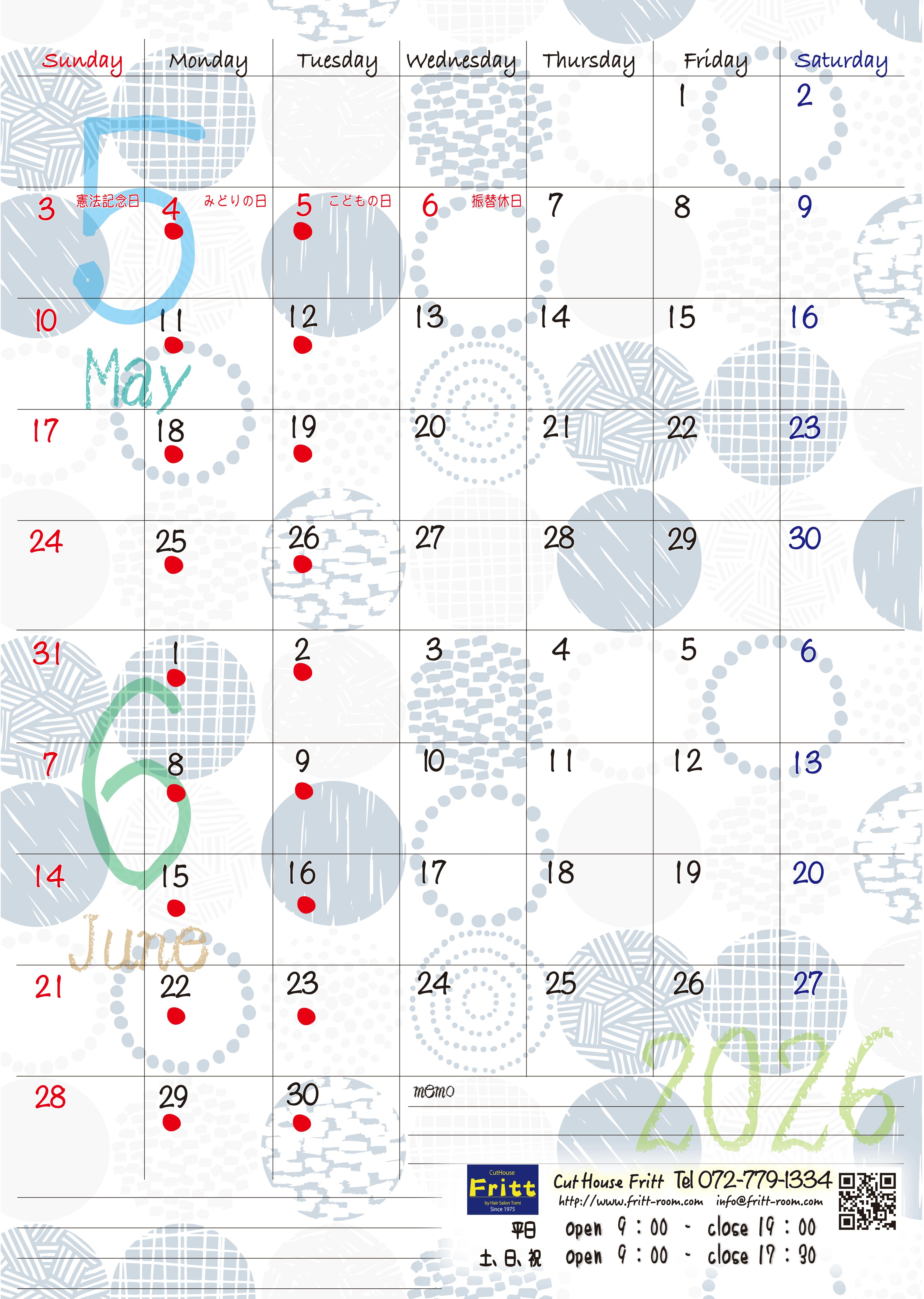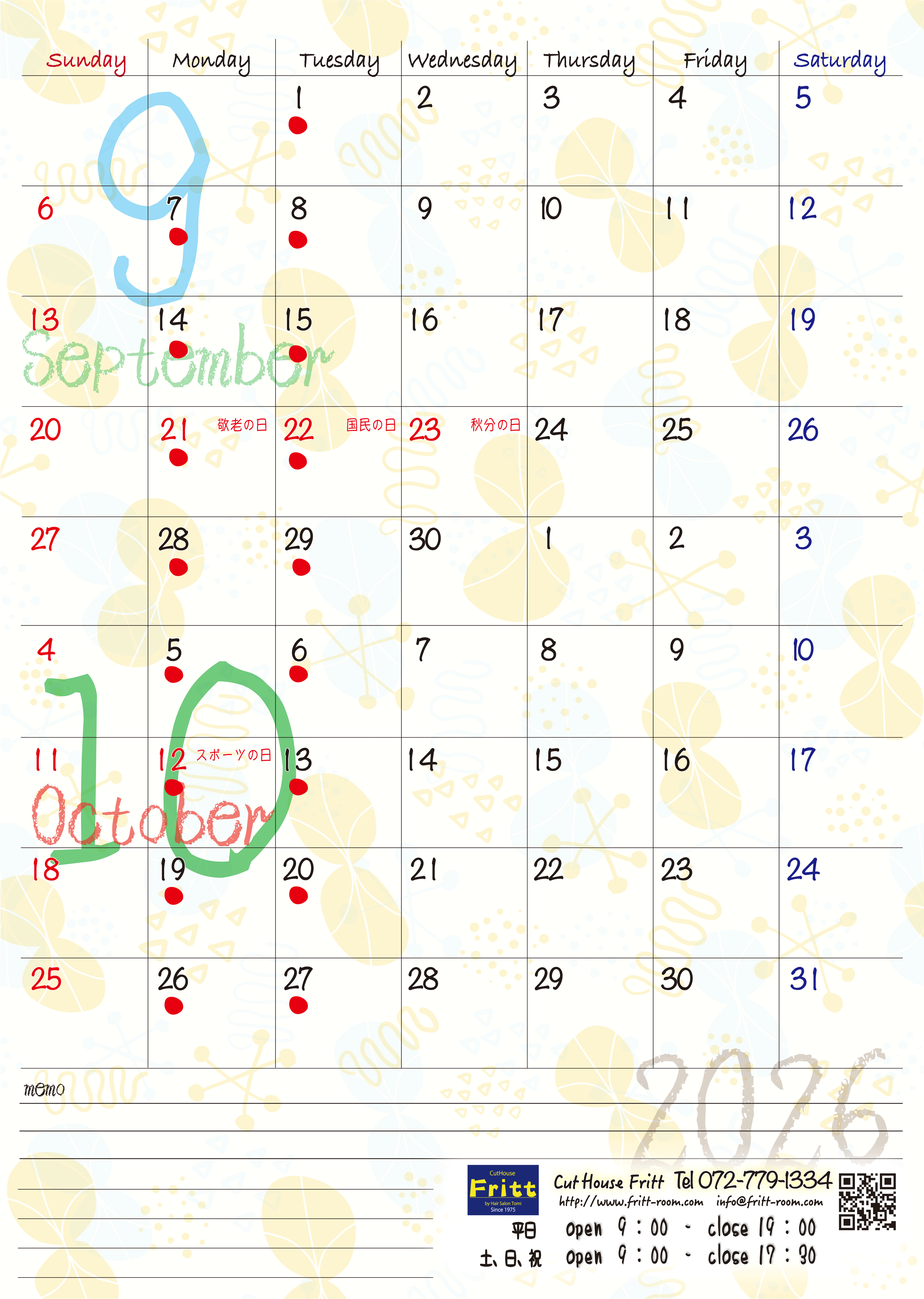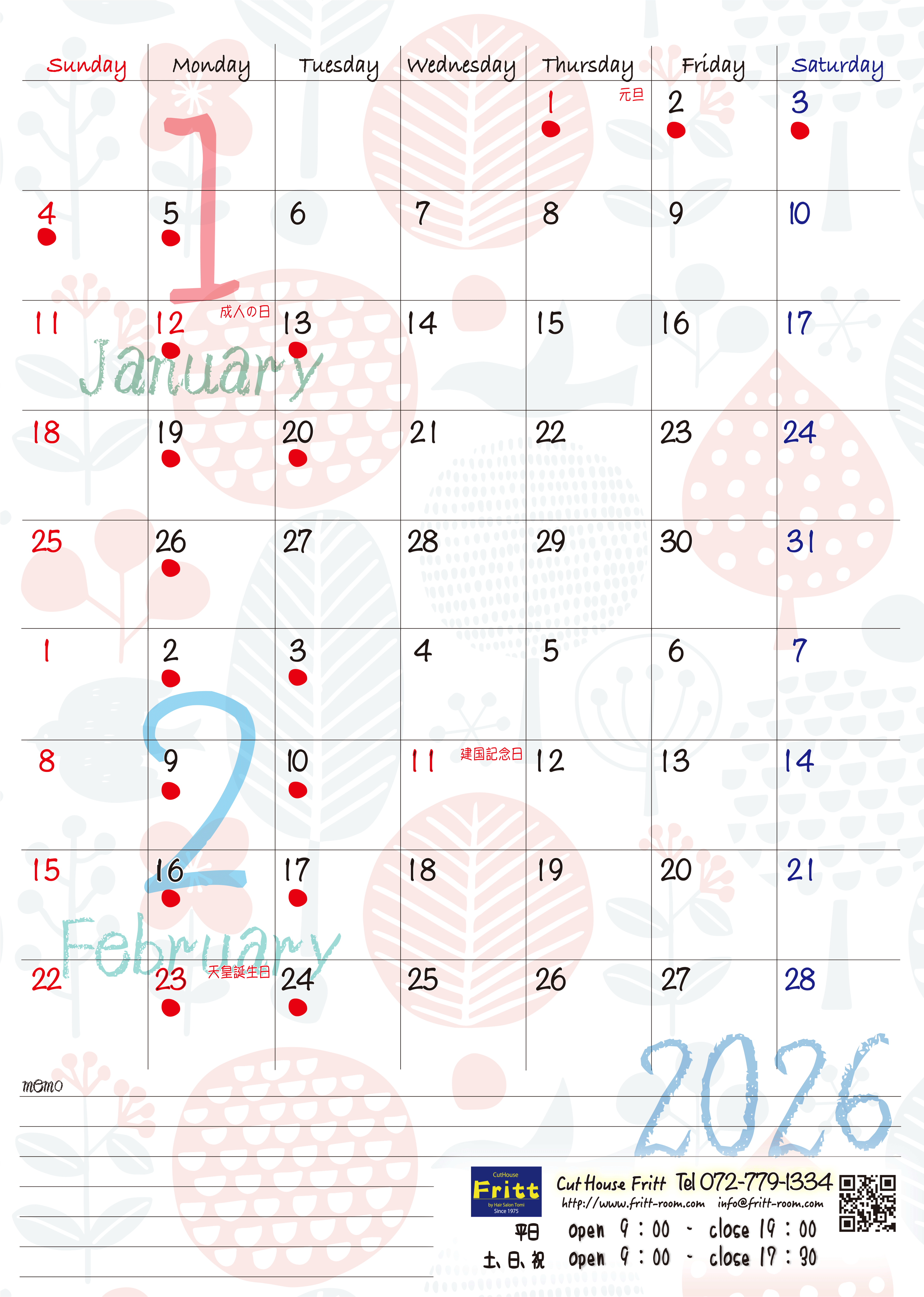 Frittお休みカレンダー