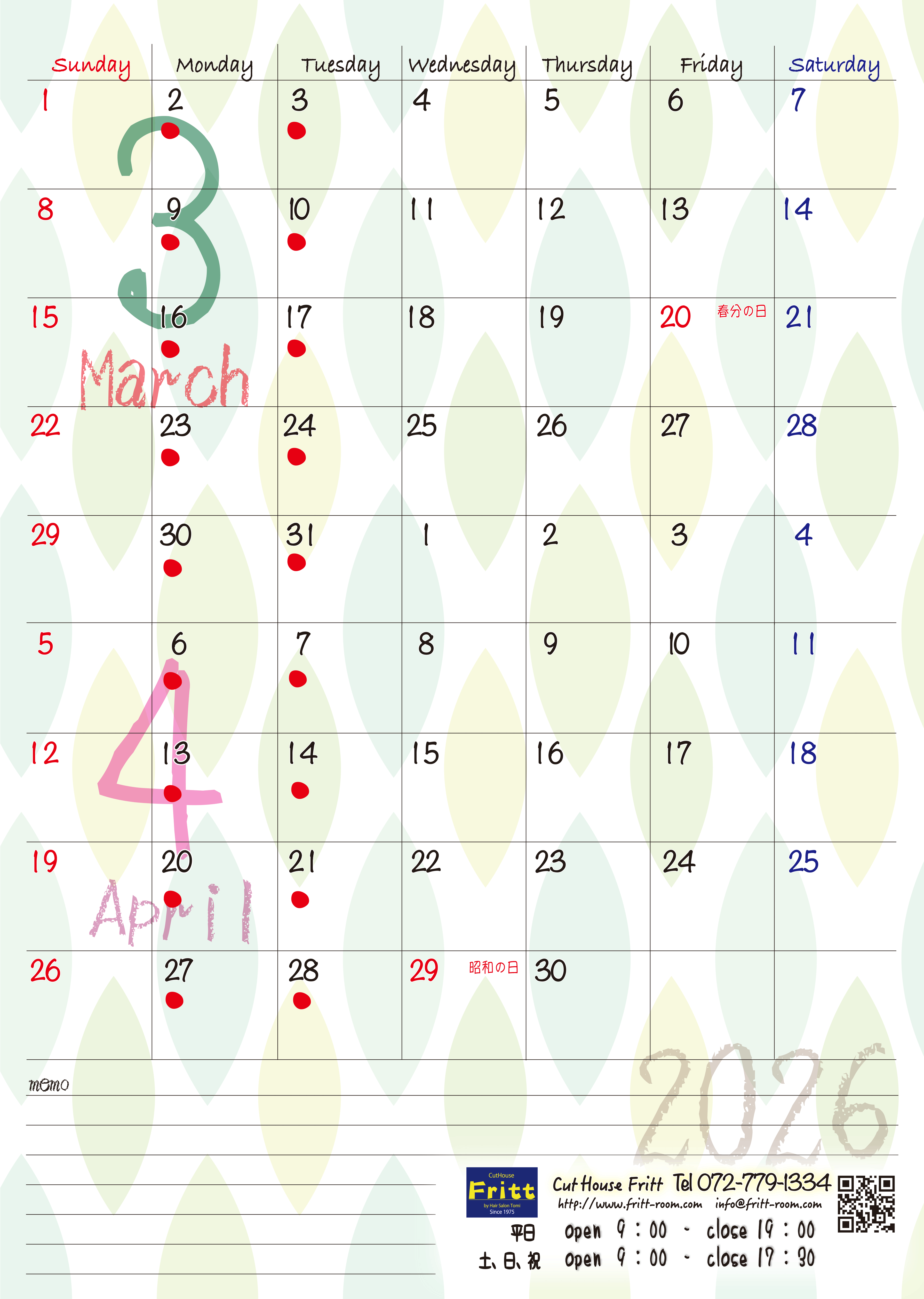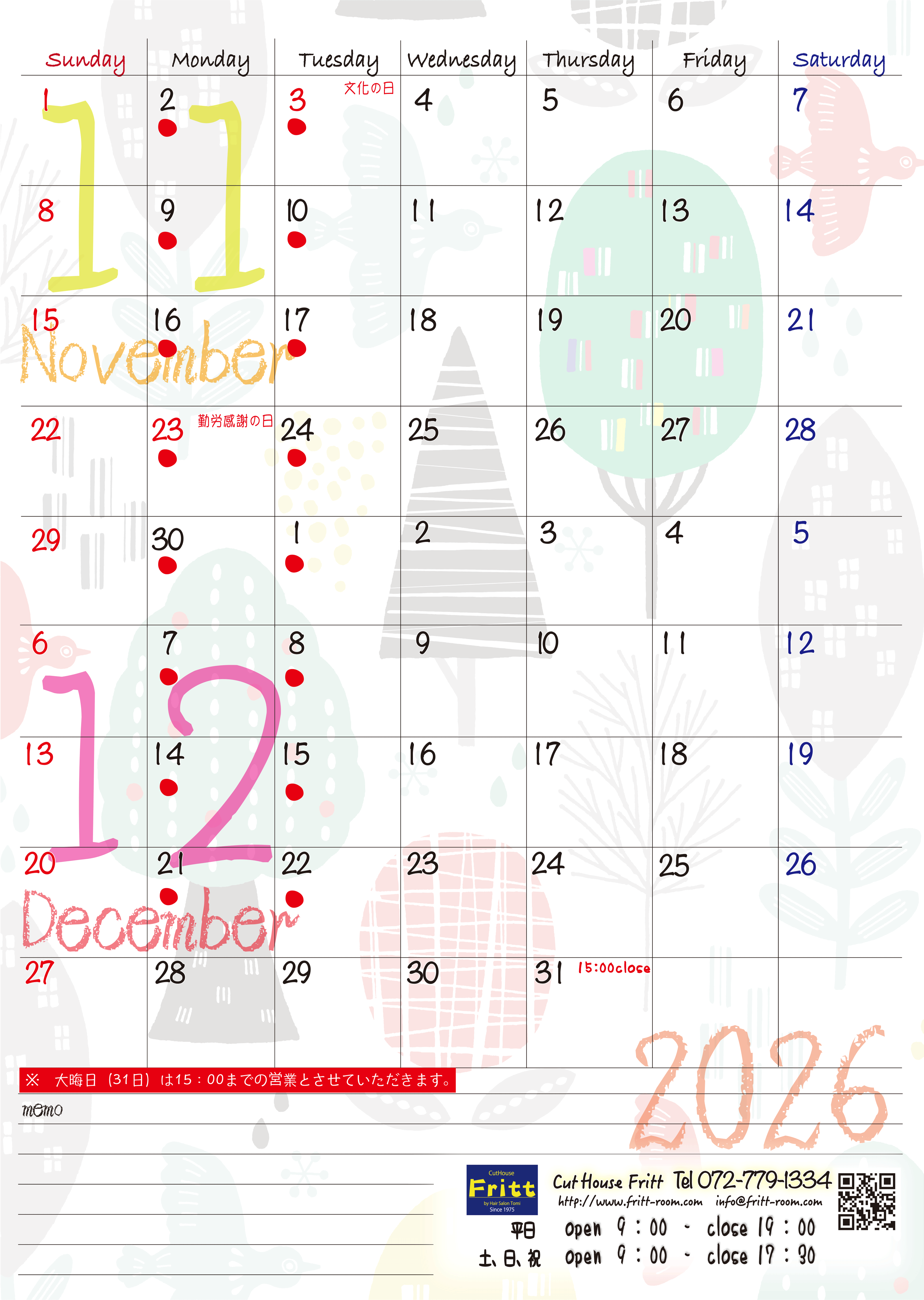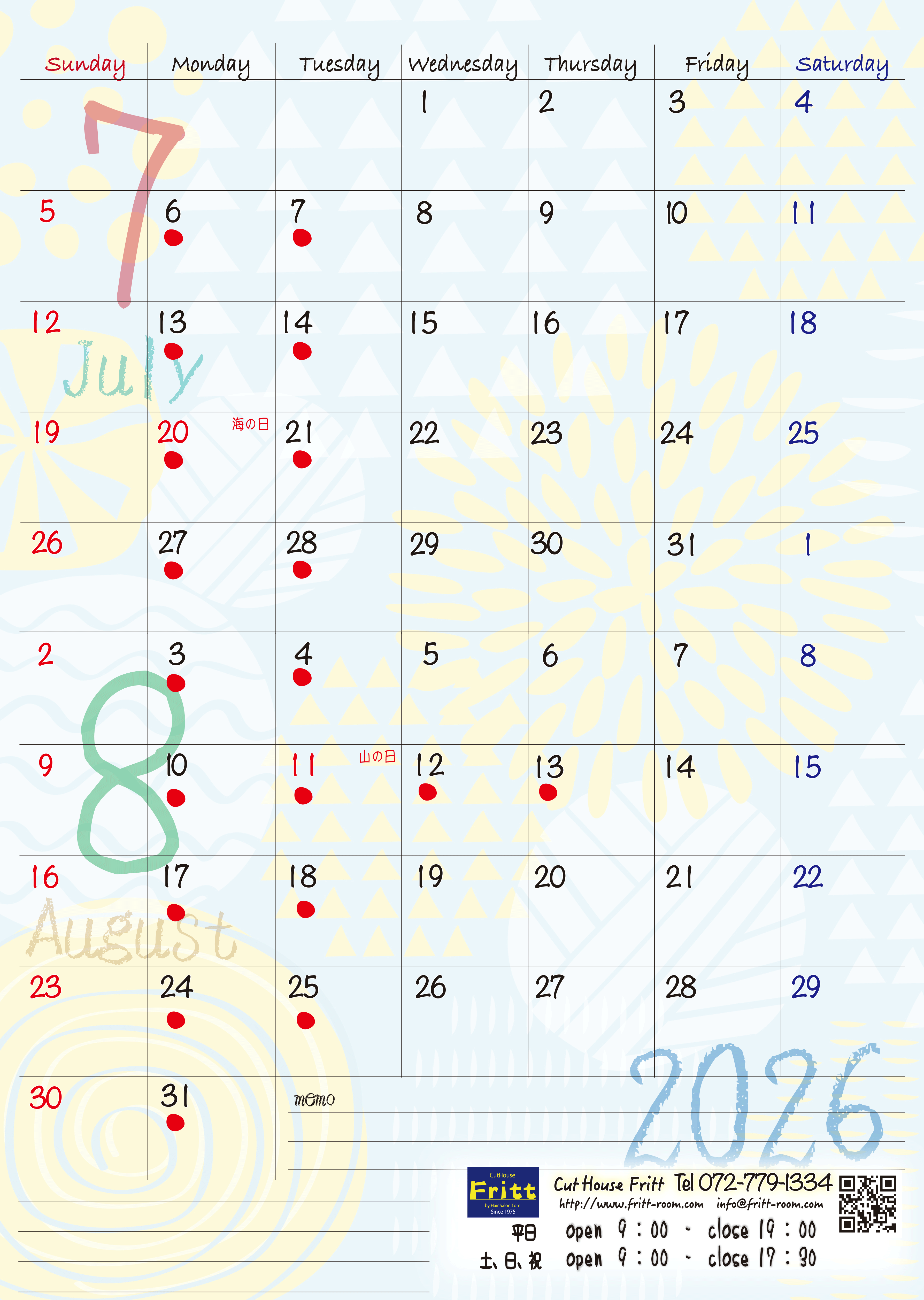Frittお休みカレンダー